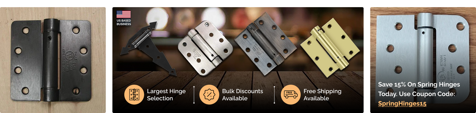 We offer one of the largest selections of door hinges online. From adjustable spring hinges, double acting spring hinges, ball bearing hinges, residential and commercial, to door accessories like wood screws, hinge door stops, ball catches, flush bolts and more.