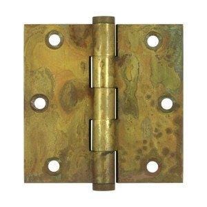 3 1/2" X 3 1/2" With Square Corners Plain Bearing Brass Hinges - Multiple Distressed Finishes - Sold In Pairs