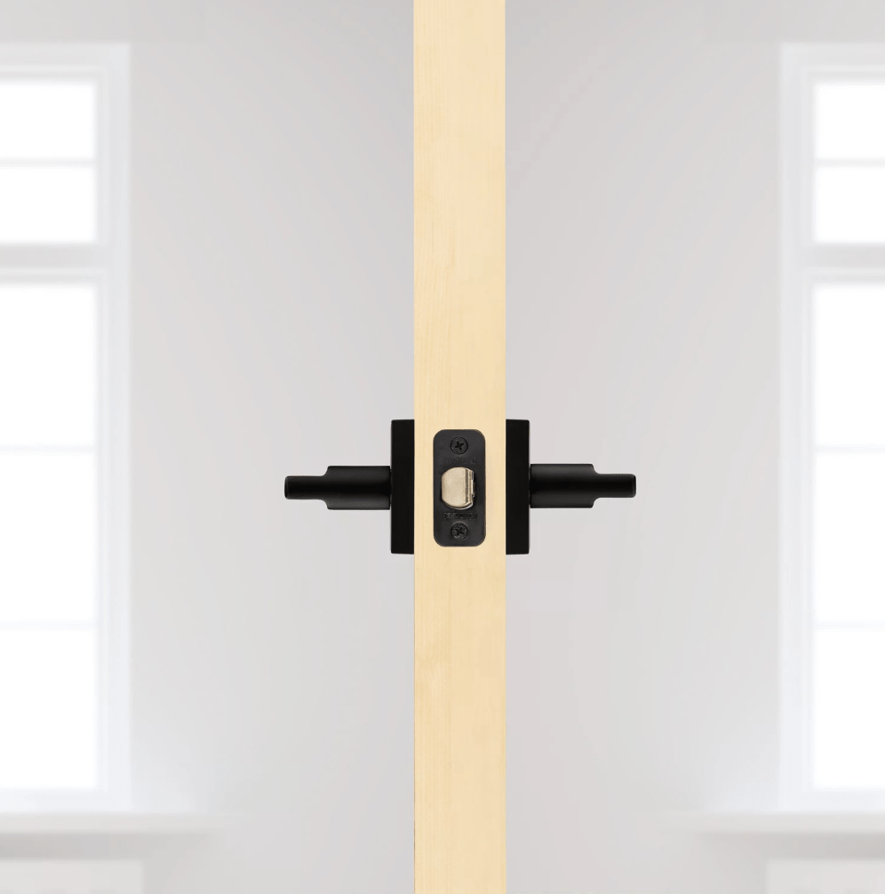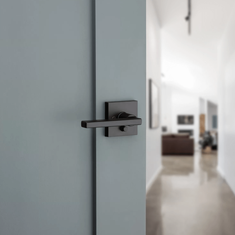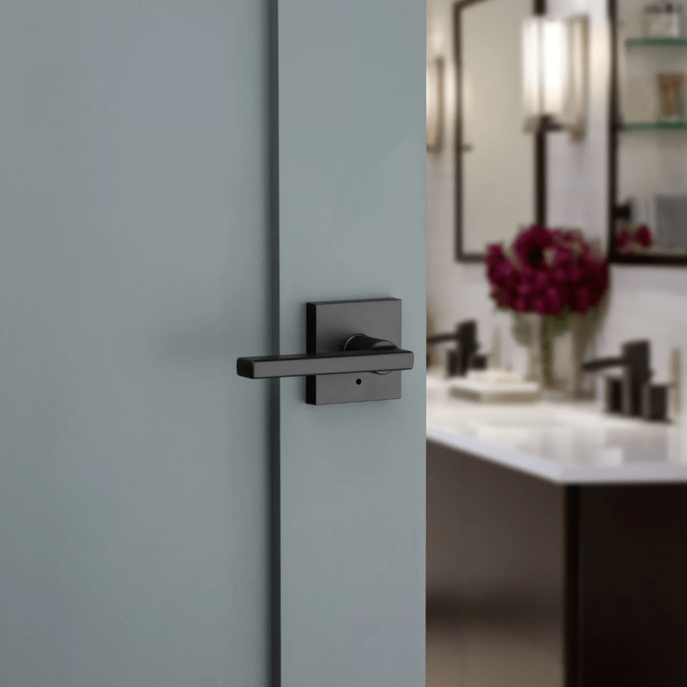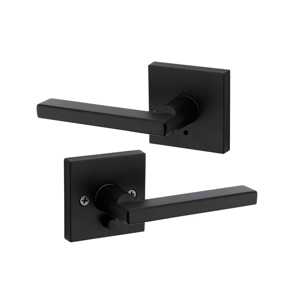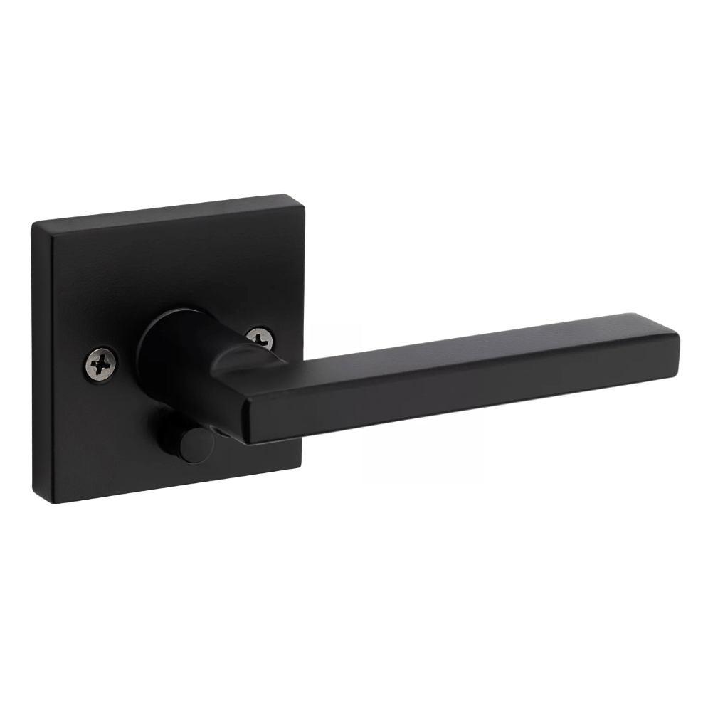 This Kwikset Residential Door Lever has a privacy lock, which makes it great for bedrooms and bathrooms. It is for doors 1-3/8" to 1-3/4" thick and is available in an Iron Black finish.