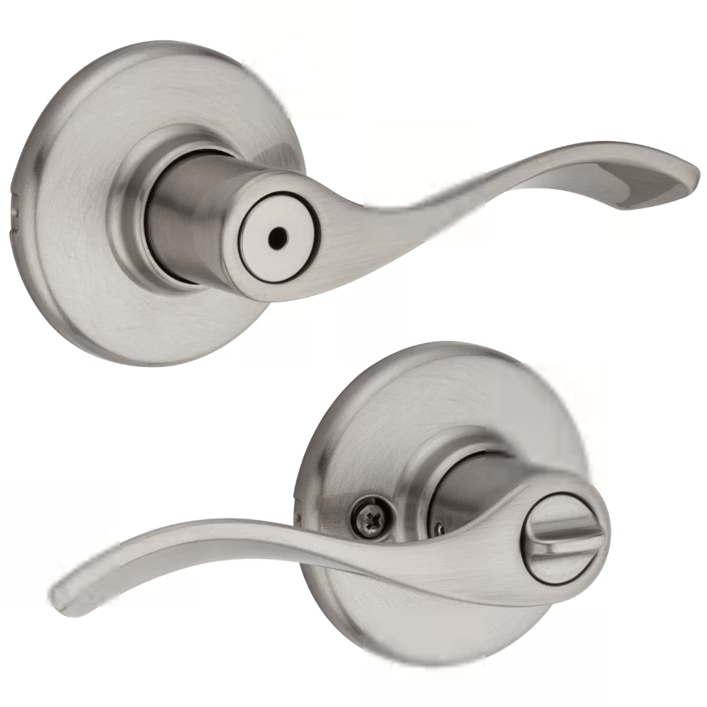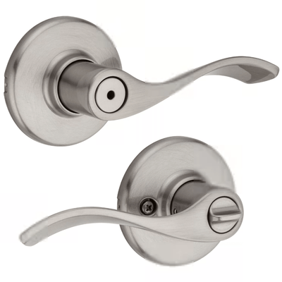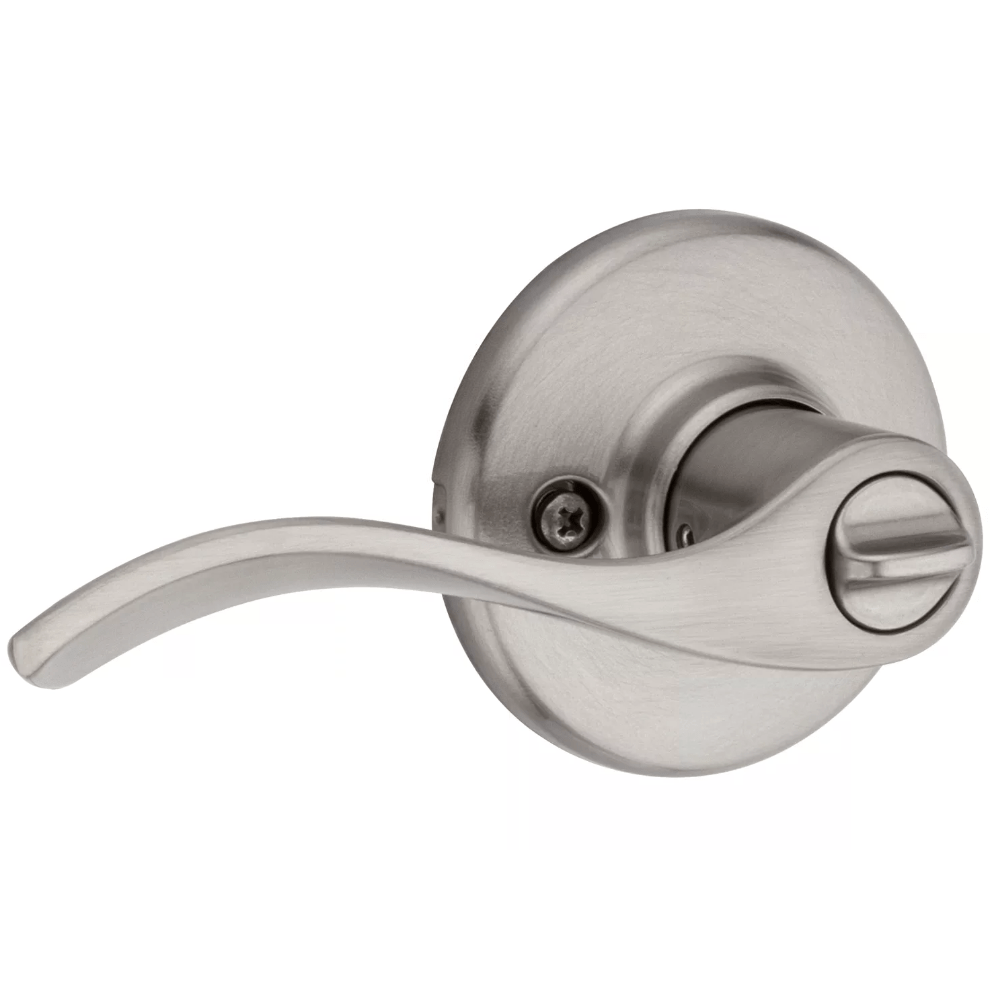 This Kwikset Residential Door Lever has a privacy lock, which makes it great for bedrooms and bathrooms. It is for doors 1-3/8" to 1-3/4" thick and is available in a Satin Nickel finish.