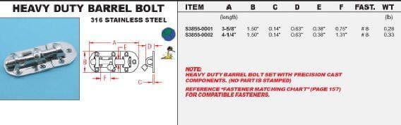 The Heavy Duty Barrel Bolt is precision cast, mirror polished and easily installed using #8 screws. This barrel bolt is made from grade 316 stainless steel for maximum corrosion resistance and durability.