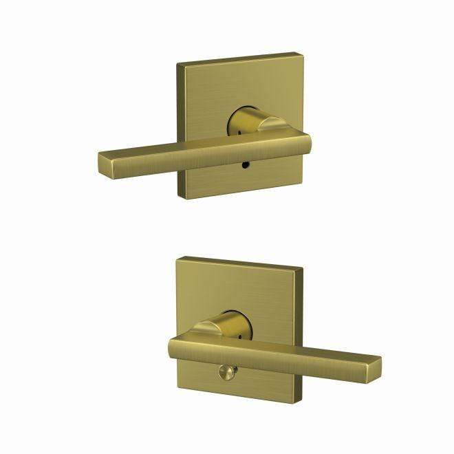 Schlage Custom Residential Door Lever - Combined Passage And Privacy Lock - Latitude Style Lever With Collins Rose Trim - Satin Brass Finish - Sold Individually