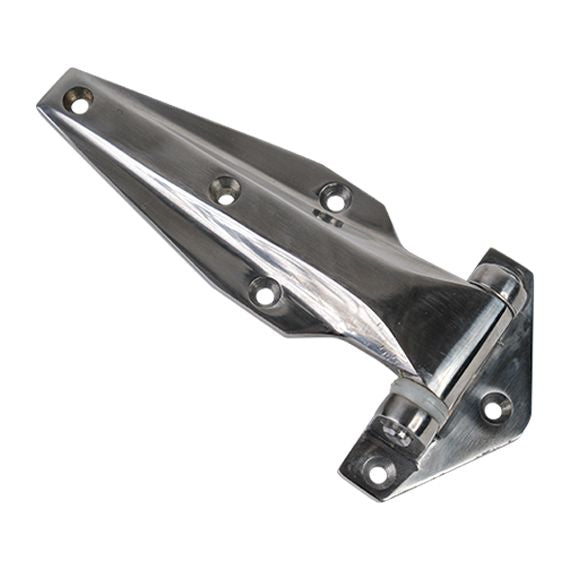 These Refrigeration Hinges are for use on vent doors, refrigerator doors, or small cabinets. They measure 6-3/32", and are available in Flush, 1/4", 7/8", and 1-1/8" offsets. They are made of 304 Stainless Steel and have a polished finish.
