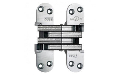 SOSS® Invisible Hinge model #220FR is for use in wood or metal applications. This full size door style hinge will provide superior appearance and durability. Our Hinges are found in many applications where flush fit, compact size and smooth operation are necessary features. SOSS® Invisible Hinges open a full 180° and are a single action hinge. The Underwriters Laboratories labeled the model #220FR SOSS® Invisible Hinge can be used on hollow metal , sheet metal, tin clad, steel composite or wood core swinging type fire doors and frames with a 20 minute rating.