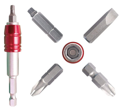 The Taper Lock, the first bit holder that really works; the harder you pull, the tighter it gets! This unique patented design uses a tapered spindle to firmly hold any bit in place. It also features a one-touch auto-lock for easy release of the bit with one hand. Works with any bit.