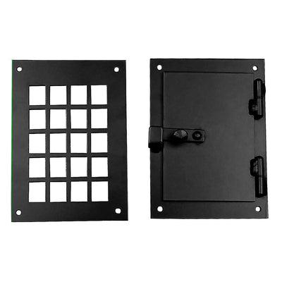 This Square Style Door and Gate Grille is made of solid heavy gauge steel. It measures 4-1/2" x 7" and is available in a Black Powder Coat finish.