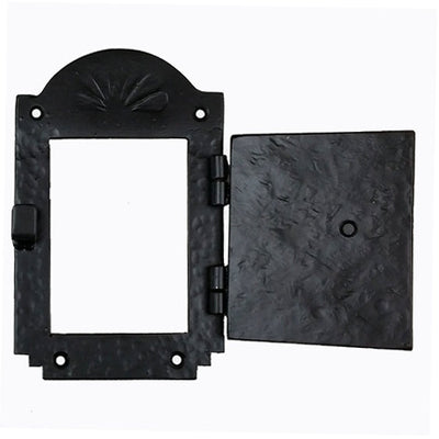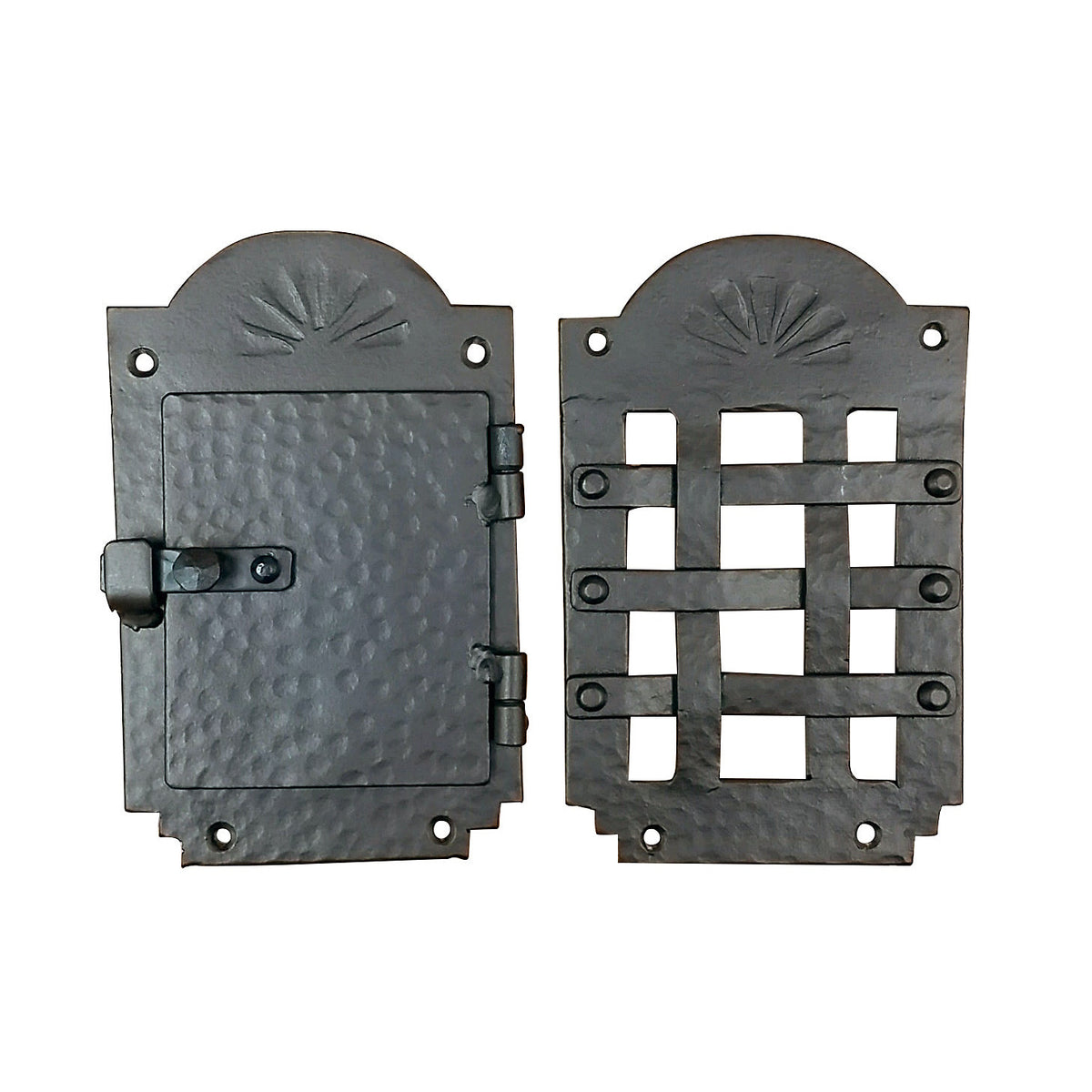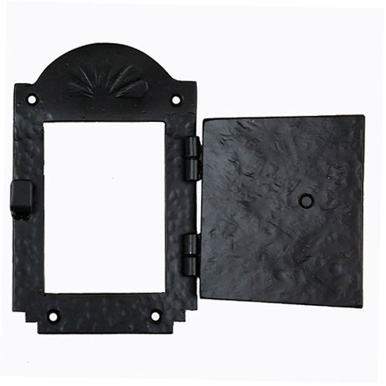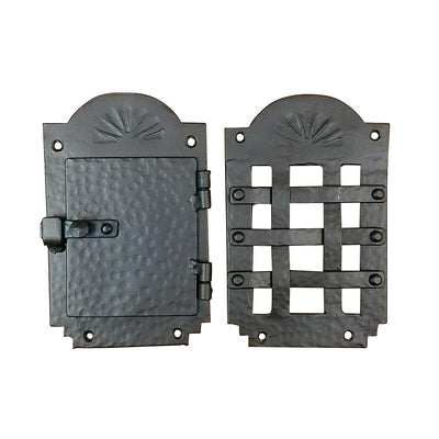 Door and Gate Grille - Peephole Hinged Iron Door Viewer - "Old Hacienda Style" - 4-1/2" Inch x 7" Inch - Sold as Kit