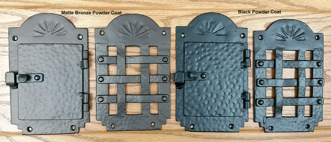 This Old Hacienda Style distressed Door and Gate Grille is a great rustic accent on your door or gate. The iron viewer is a small iron door that opens to see visitors, and the latch keeps the door locked when not in use. It measures 4-1/2" x 7" and is available in a Black Powder Coat or Matte Bronze finish.