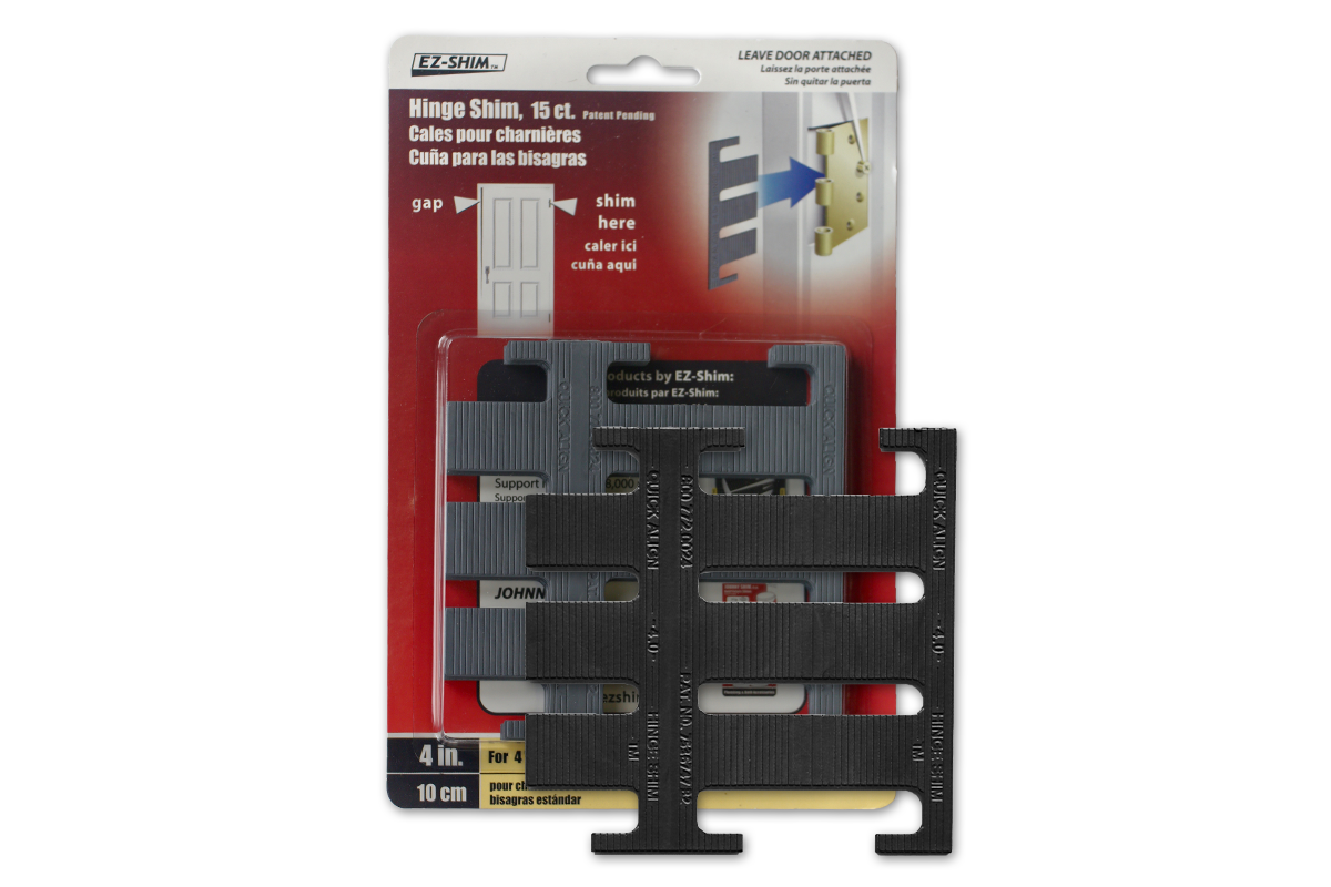 If you are looking for a quick, easy, and inexpensive way to align your door, our door hinge shims can help. Many times, a piece of cardboard is used behind the hinge when installing a door or correcting an out of alignment jamb. However, cardstock and cardboard compress, which causes doors to migrate, sag and bind in the jamb. Door Hinge Shims helps prevent future problems such as the need to plane the door and costly refinishing work. For more severe gaps, Hinge Shims are designed to fold into a "z" pattern creating a triple thick shim. Hinge Shims are slightly wedge shaped as well, allowing additional control during installation or simple door gap correction. They are also ideal for the steel doors & jambs commonly found in hotels, offices and modern commercial buildings.