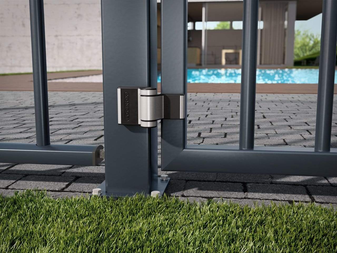 The Locinox Puma hinge is a compact surface mounted hinge with a powder coated aluminum housing. Its 180° opening angle together with its vertical and horizontal adjustability make the hinge flexible. Simple to install thanks to the Quick-Fix fastening system; no welding needed. This hinge easily supports gates up to 3.5 ft wide and 132 lb. The Puma hinge’s aesthetic design perfectly fits aluminum and smaller residential gates. It is available in a silver or black finish. Click to learn more about the benefits of Locinox Gate Hardware