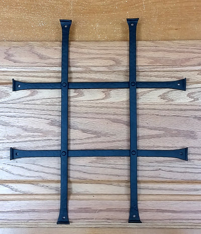 This low profile door and gate grille is designed exclusively for overhead doors that have limited clearance when rising door is nearing the top jamb. It measures 12" x 14", covers up to 8" x 10" opening, and has a protrusion of only 1/2". It features curled tips, 4 bars, and has a black powder coat finish.