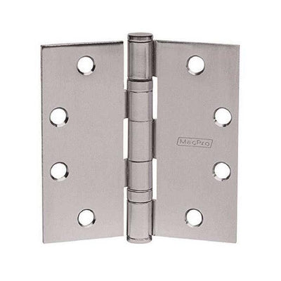 These MacPro Full Mortise Bearing Hinges have five knuckles and are contractor grade to get the job done right. They measure 4-1/2" x 4-1/2" Inch, are available in a Stainless Steel or Satin Chrome finish, and have an optional Non-Removable Pin.