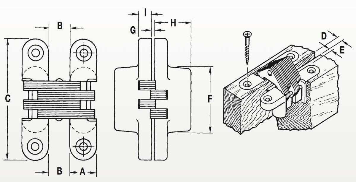 Our High Quality SOSS® Concealed Door Hinge model #216 is for use in metal or wood applications. This full size door hinge will provide superior appearance and durability. These hinges are used where compact size, smooth operation, and flush fit are necessary SOSS® Concealed Hinges open a full 180° and are a single action hinge. Multiple Finishes Available!