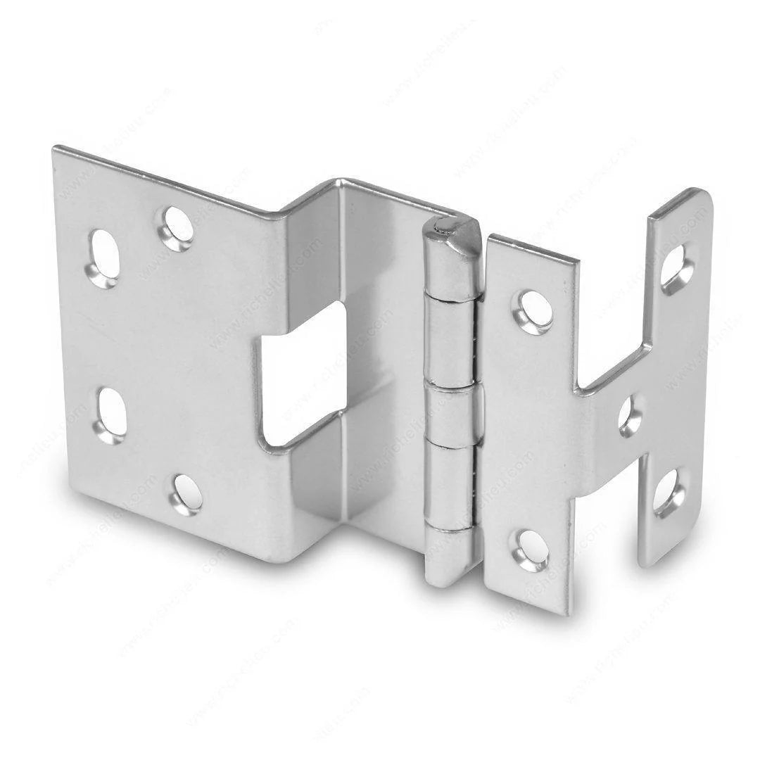 We carry a large variety of high quality offset overlay hinges. This offset hinge is available in Satin Chrome, Black, and Stainless Steel finishes, with a choice of 3/4" or 13/16" door thickness.