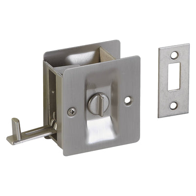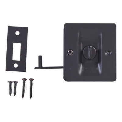 These Pocket Door Latches are designed with a latching mechanism to lock the door. They fit doors 1-3/8" thick and are available in Satin Nickel, Oil Rubbed Bronze, Brass, Antique Bronze, and Chrome finishes.