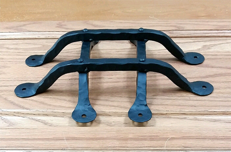 This premium door and gate grille is made of solid hand-forged iron, completely handmade by a skilled blacksmith. It measures 8" x 10" and covers up to 4" x 6" opening. It features flat tips, four bars, and has a black powder coat finish.