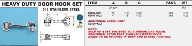 Stainless Steel Marine Heavy Duty Door Hook Set 3" Or 4 " - Sold Individually