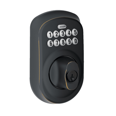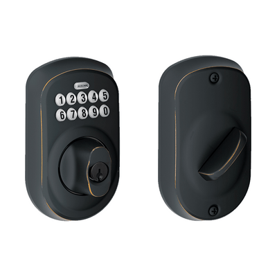 Schlage Residential Electronic Keypad Deadbolt Lockset is guaranteed to fit on existing, standard pre-drilled doors. It features easy installation with just a Phillips screwdriver, and no wiring is needed. It's ideal for front doors, side & back doors, garage entry doors, etc., and has storage of up to 19 access codes. It is available in an Aged Bronze finish.