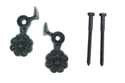 These Colonial/Romantic style Shutter Dogs add the perfect finishing touch to the exterior of your home. Each design is a careful reproduction of an antique design with excellent detailing. The lag bolt measures 4-1/2″ and is suitable for most applications. The shutter dogs measure 4-1/2", are made of cast iron, and have a black powder coat finish. With a WeatherWright™ coating, they are of the highest quality and will last for generations.