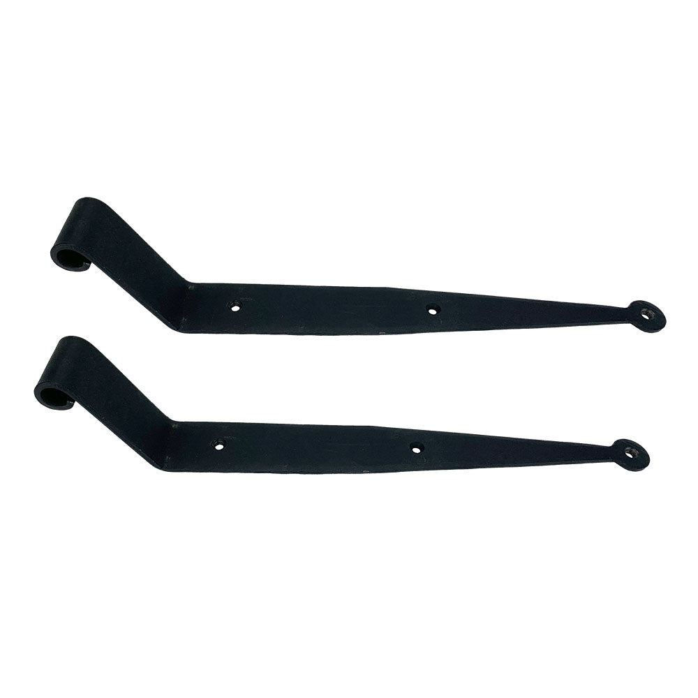 These Strap Hinges for Shutters measure 12" and are available with a 1" Inch, 1-1/2", or 2-1/2" Inch offset. They do not include pintles - use these hinges when you have pintles or wish to use the lag pintle and do not need the regular pintle that comes with the standard 12" strap hinge. They are made of steel and have a black powder coat finish.